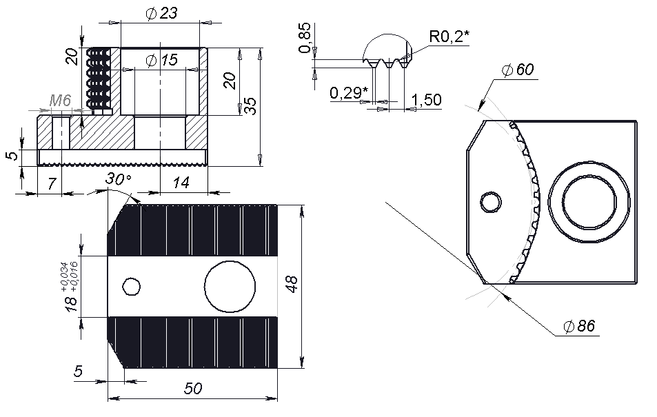 Токарные калёные кулачки 12″_60x86 с зубчатой метрической рейкой. Шаг зуба рейки 1.5×60°.